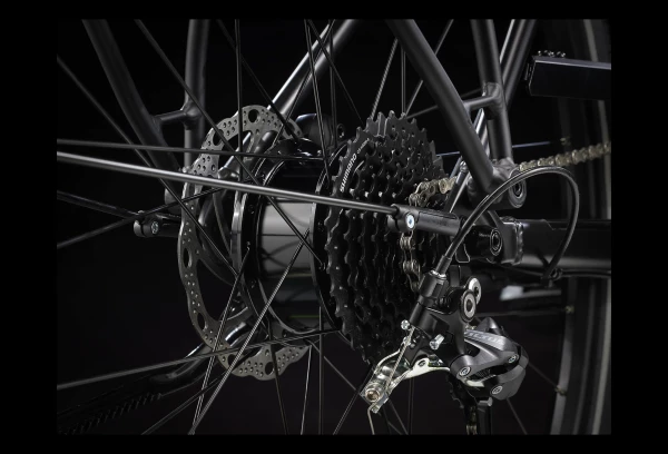 | Cadre | Aluminium Alpha Gold, acheminement interne des câbles, batterie interne, fixations de porte-bagages et garde-boue, freins à disque à fixation Post-Mount, fixation pour béquille, espace pour moteur de moyeu O.L.D. 144,5 mm |