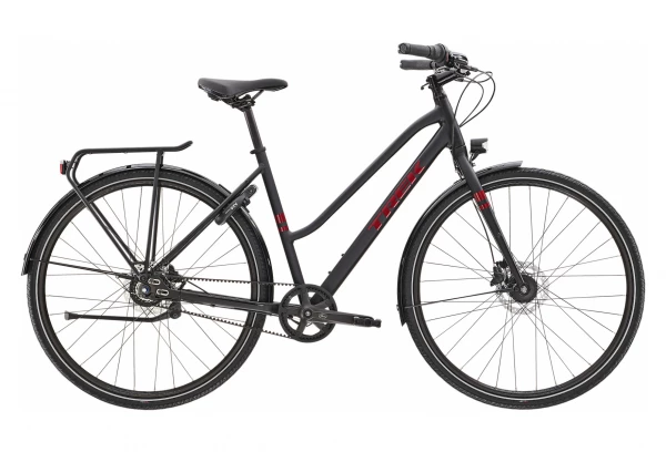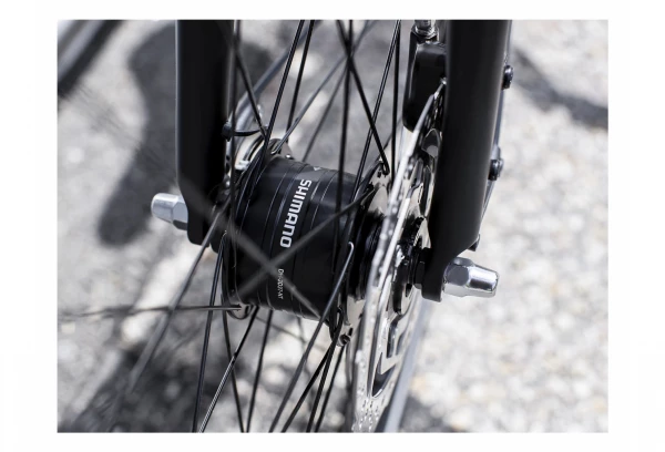 | Roues | Bontrager Connection, double paroi, 32 trous, largeur de 20 mm, valve presta Moyeu à dynamo Shimano 3 watts Shimano Nexus 8 vitesses |