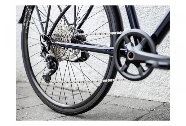 | Accessoires | Éclairage : Size: S, M, L Spanninga SOLO /Size: S, M, L : AXA Greenline 35, rechargeable via USB / Béquille / Porte-Bagages / Garde-boue : Eurofender Snello |